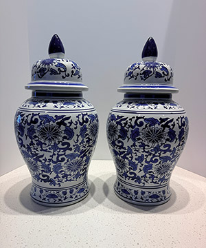 Add timeless elegance to your décor with this striking set of ginger jars. Standing 19 inches tall, each jar is shaped and painted entirely by hand in the classic chinoiserie tradition of blue-and-white wares. Exuding both artistry and grandeur, these jars make an impressive statement whether displayed together or separately as focal accents. A perfect blend of heritage craftsmanship and refined design, they are sure to elevate any space with enduring beauty.