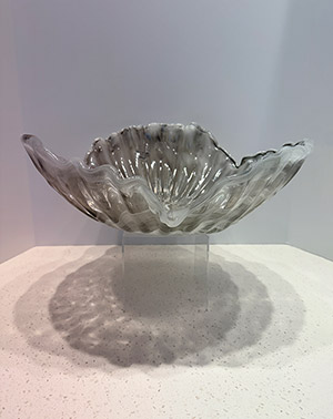 This item measuring 16 inches in diameter showcases the timeless beauty of Murano glass. A beautifully crafted large bowl, with its soft white and gray tones, exudes understated sophistication and versatile charm. Made in Murano, Italy.