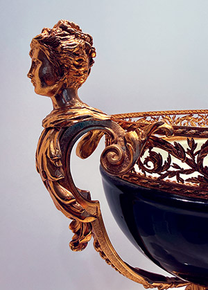 COBALT BLUE PORCELAIN & GILT BRONZE CENTERPIECE