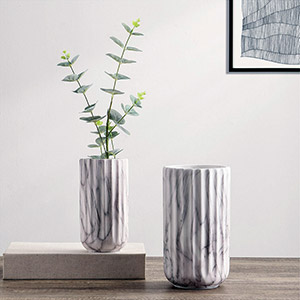 Stunning décor set, featuring two Silene vases and two Hara candle holders. The Silene vases, crafted in ceramic with a timeless white marble finish and graceful fluted detailing, measure 8.5 inches and 7 inches tall, perfect for displaying botanicals or styled as a pair. Complementing them are the Hara candle holders, each blending a solid white marble base with a polished gold-tone stem, measuring 10 inches and 6.25 inches tall. Together, this four-piece collection offers a harmonious balance of modern sophistication and timeless design, making it a striking addition to any mantel, sideboard, or tabletop display.