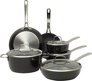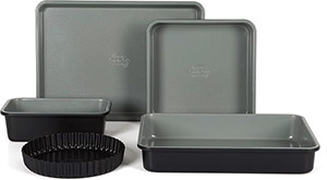 This versatile kitchen collection brings together premium cookware and essentials from Sur La Table. It includes a 3.75-qt everyday pan with borosilicate lid and gold-coated knob, a 5-piece cutlery set with beechwood magnetic stand, and a 5-piece bakeware set with nonstick interior. Also featured is a 5.5-qt Dutch oven in matte brick with rose gold knob, a 1.9-qt matte black teakettle, and a 10-piece cookware set with nonstick ceramic interior and induction base. A complete set designed to elevate both everyday cooking and special occasions.