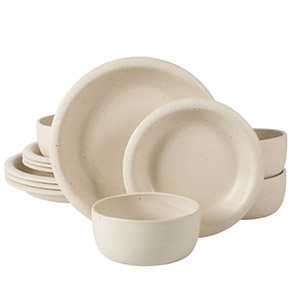 This elegant Bloomhouse kitchen set combines timeless craftsmanship with modern functionality. It includes a 7-qt Dutch oven with lid and wooden trivet, a 7-piece cutlery set with German steel blades and olive wood handles, and a large Lake Como beechwood cutting board. Also featured is an 8-piece cookware set with taupe ceramic nonstick interior and gold accents, along with a 12-piece Corsica Clay dinnerware set finished in a reactive sea salt glaze. A beautifully coordinated collection to inspire every meal.